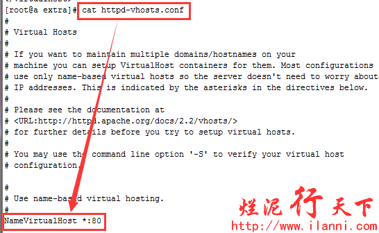 同时如果配置基于域名的虚拟主机,我们必须要启用NameVirtualHost *:80行。如下: