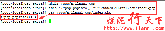 echo "<?php phpinfo();?>">/www/a.ilanni.com/index.php