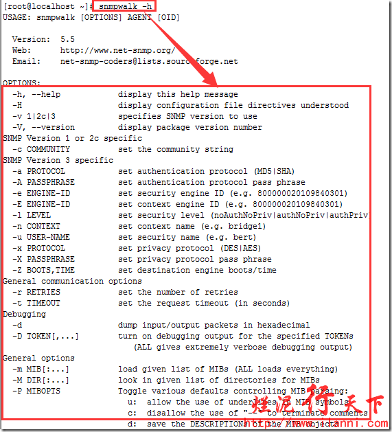 snmpwalk的用法,我们可以通过帮助信息进行查看,如下: