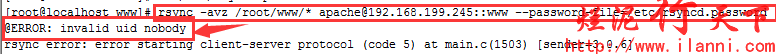 rsync -avz /www/ apache@192.168.199.245::www –password-file=/etc/rsyncd.password