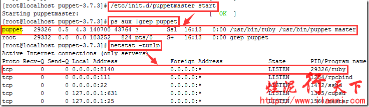 RPM安装的puppet客户端与源码安装的一样,我们现在来启动puppet客户端。如下: