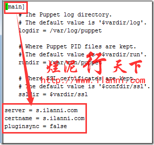 master端安装完毕后,我们来配置puppet服务的配置文件,其方法和源码安装方法一样。如下: