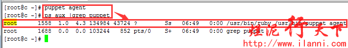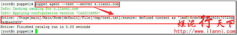 我们现在使用puppet agent –server s.ilanni.com连接master端,如下: