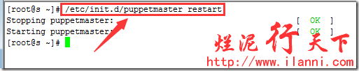 同时site.pp文件创建完毕后,我们要先重启下master端,如下: