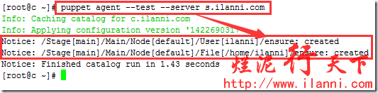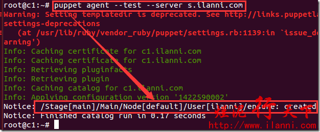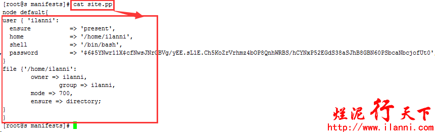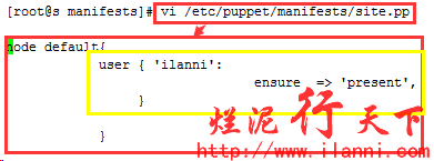 注意:该命令中出现了file资源,主要目的是对/home/ilanni目录进行授权以及修改其所属用户及用户组。
