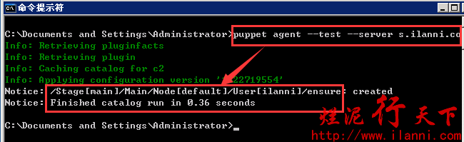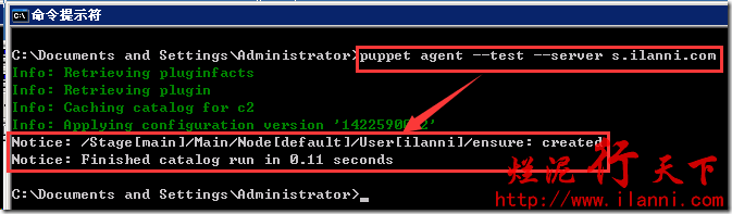 通过上图,我们可以很容易的看出windows系统中也创建ilanni这个用户。这充分体现了puppet 的跨平台性。