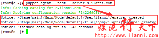 puppet agent –server s.ilanni.com