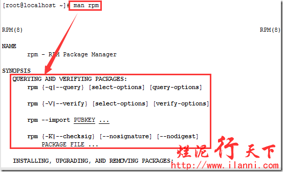 有关rpm命令的详细使用方法,我们也可以通过man rpm进行查看。如下: