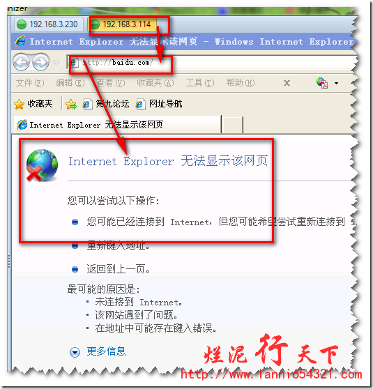 我们看到其他的IP是无法打开外网的,那么我们再来看看设置的IP: