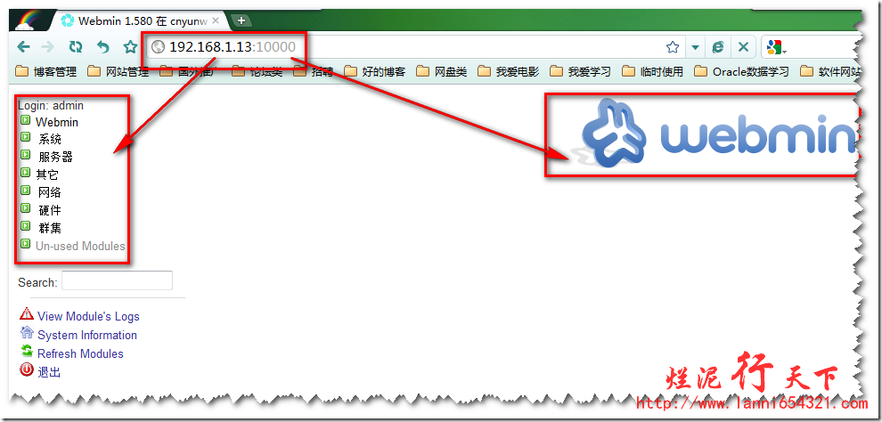 呵呵,说实话linux的学习是学一段时间,放一段时间。这不今天想起来,要通过webmin来修改本机的IP及DNS地址了。当然了webmin的安装很简单的,网络有很多的相关教程,在这我就不做详细的讲解了。如果各位有兴趣饿的话。可以看我的另外一篇博客《烂泥:webmin的安装》。