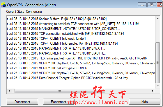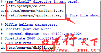 第二、修改了openvpn服务器的相关证书,由原来的server.csr、server.key修改为vpnilanni.crt、vpnilanni.key。