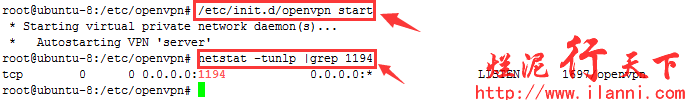 通过上图,我们可以很明显的看出openvpn已经在此启动,而且也确实使用的TCP协议的1194端口。