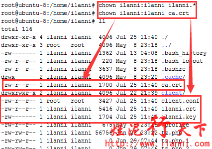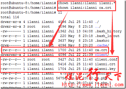 通过上图,我们可以很明显的看出已经生成了ilanni.csr、ilanni.crt和ilanni.key这个三个文件。其中ilanni.crt和ilanni.key两个文件是我们要使用的。