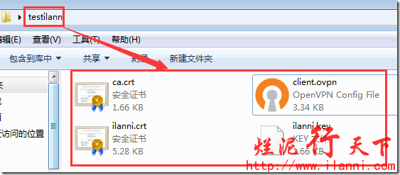 通过上图,可以很明显的看到已经生成了vpnilanni.crt、vpnilanni.key和vpnilanni.csr三个文件。其中vpnilanni.crt和vpnilanni.key两个文件是我们要使用的。