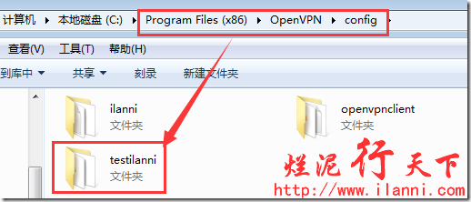 下载并安装后,把testilanni这个文件夹复制到openvpn客户端安装的config文件夹。如下: