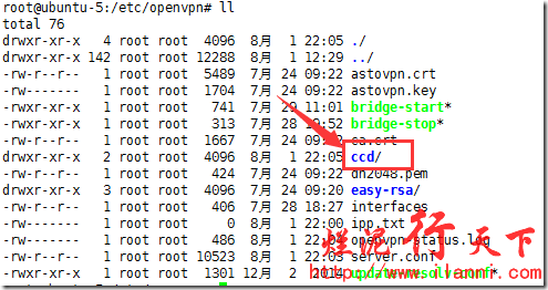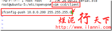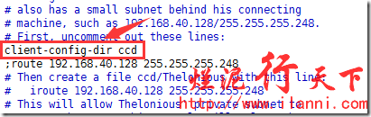 只需要把server.conf文件中的开启client-config-dir ccd,然后在/etc/openvpn目录下创建ccd目录。如下:
